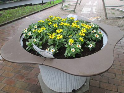 ※足立区から当施設傍の竹北公園に車いすの方が楽しめる腰の高さくらいのお花型のプランターを設置していただきました。当施設が自主管理することになりましたので、利用者・職員でお花のお世話を頑張りたいと思います。お近くにお越しの際はご覧ください。