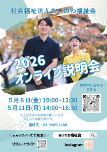 あいのわ福祉会では就職説明会をオンラインで開催いたします。