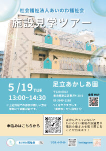 あいのわ福祉会では足立あかしあ園の施設見学ツアーを開催いたします。
