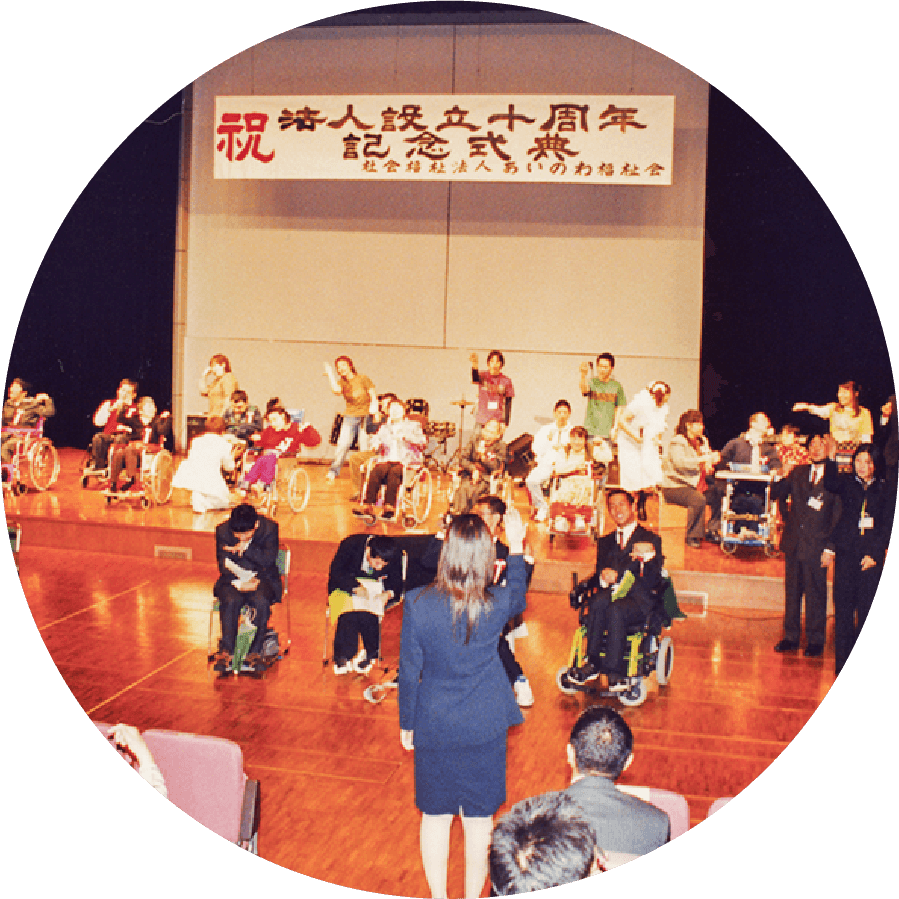 2003年10月に、足立区役所にて法人設立10周年記念式典を開催。足立区長・全国肢体不自由児者父母の会連合会会長・足立区肢体不自由児者父母の会会長にご参加いただきました。