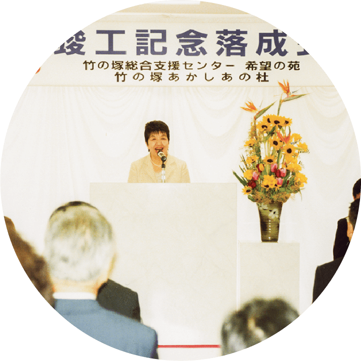 2007年4月に、生活介護(のぞみ)・入所(きずな)・短期入所(なごみ)の3つの事業を運営する大型の複合施設「竹の塚あかしあの杜」を開設。自治体や行政と協力し、将来を見据えて安心して地域で暮らせる入所施設が完成しました。