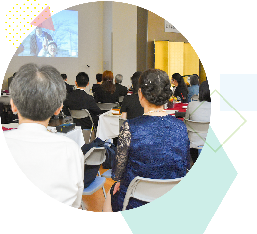 式典では近藤足立区長をはじめ多くのご来賓の方々に心温まる祝辞をいただき、法人からは、法人、各施設の運営にご尽力いただいた方々に感謝の思いを込めて功労者表彰を行わせていただきました。さらに足立区肢体不自由児者父母の会からは法人へ寄付金も頂きました。頂いた寄付金はこれからの法人運営に役立てさせていただきます。