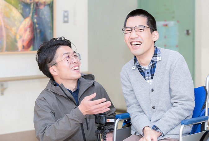自分が充実した環境で働けているのは、職場の皆さん、利用者の皆さんがいてくれるからです。社会福祉士の資格も取得できたので、専門職としての責任を持って、利用者の皆さんが安心して通所できるように努力していきたいと思っています。